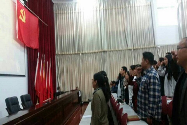 2015年7月1日下午,植物科学学院党委在学术报告厅召开“七一建党节重温入党誓词”党日专题会议。我院党委次仁吉书记、党委次仁央金副书记、达红旗副院长、余小林副院长及教研室23位老师出席会议。我院全体学生党员、预备党员和积极分子共计227人参加了会议。