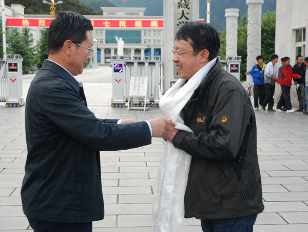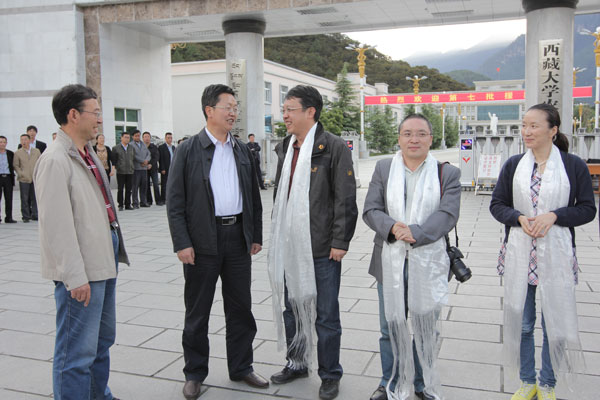 2013年8月2日,我院第七批援藏干部在我院党委委员、纪委书记谢金川同志带领下抵达我院。我院在校领导党委书记、副院长纪建洲,副院长郑维列,党委委员、副院长赵垦田,以及各县处级单位主要负责同志在学院大门欢迎。纪建洲书记向第七批援藏干部敬献了洁白的哈达。洁白的哈达、吉祥的切玛、甜醇的青稞美酒和一声声亲切问候,表达了学院对援藏干部的美好祝愿。 10名援藏干部分别来自东北林业大学、浙江大学、华中农业大学、中国农业大学、河海大学、华中科技大学、北京林业大学等七所高校,其中博士后1名、博士7名、硕士2名。他们高学历、高职称、年富力强,必将为我院科学和谐健康发展注入的生机与活力。
